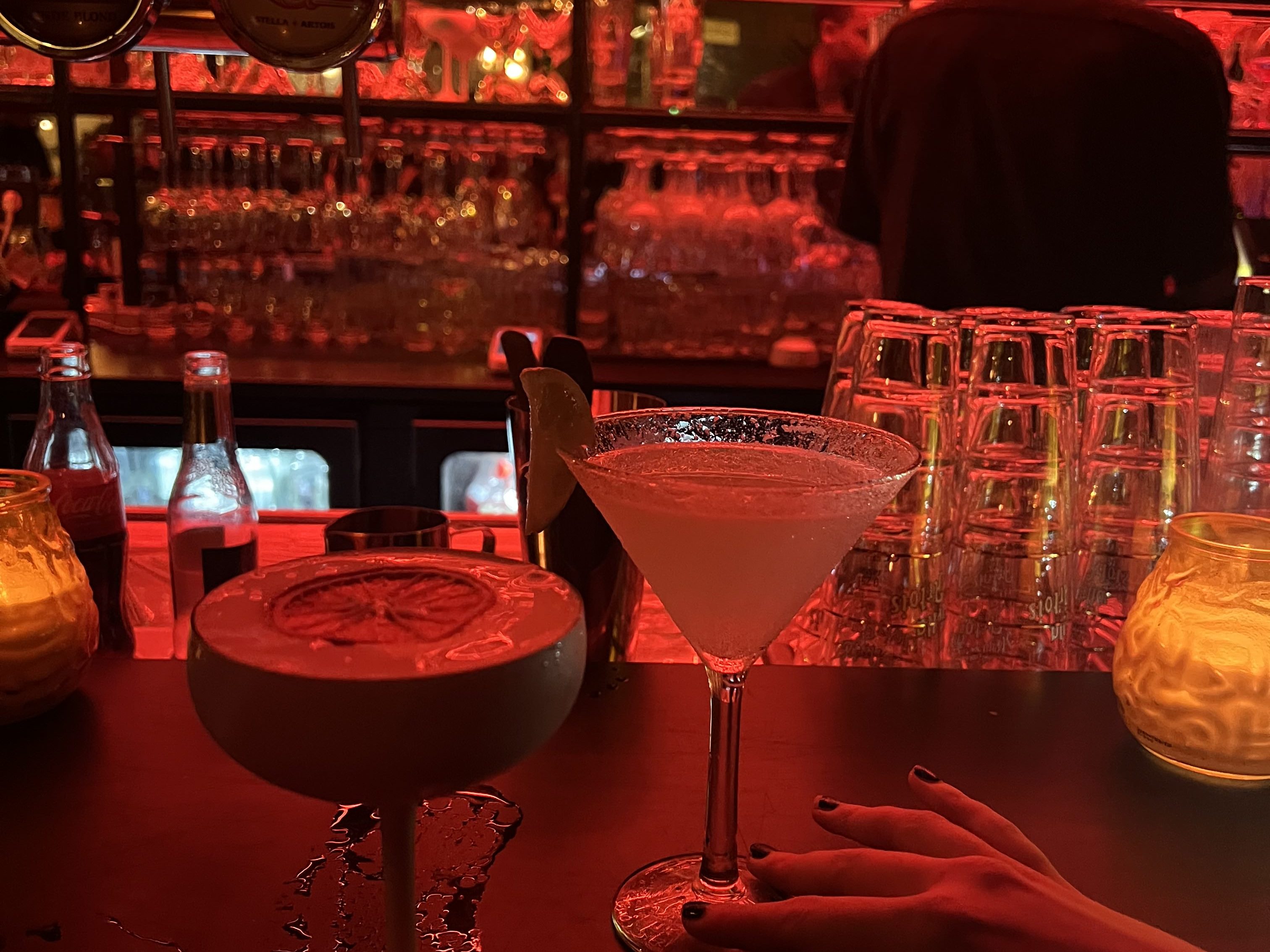 The size of this bar isn’t ideal for its popularity but it is still a great place to visit. As a whole, the bar has some dancing, tables and couches to sit at and they serve amazing cocktails. The bar backdrop is full of light that radiates a red ambiance to the rest of the room and while it seems like a fancy cocktail bar, the staff and cozy couches make the energy comfortable. In addition to the amazing atmosphere inside, just a stone’s throw away is the Cathedral of Our Lady making it the perfect, central location.